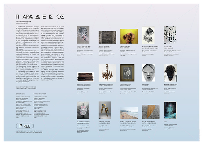 ............................................ Interiors Projects Logos Covers Books Prints Publications Videos ............................................ Sti Skia Ton Vraxon Urbanity Caratex Lookbook King George Simplicity The Tomb of Christ Paradise Geometry Lazy Boy Team We Will Always Have Greece Moodlikeme Darling Bar Echo Beach Concept Store Metropolis Tribeca Meze Tony Bonanno Tora Tora Tora Plus X Top Spot MMD Shiping Services National Printing Office 9 Magazine Ethnodata ............................................ Paradise Art Exhibition Concept / Curation / Poster / Catalogue 2016 Piree Art Space Kastoros 78 Piraeus Artists: George Vaviloussakis Vassilis Gerodimos Takis Germenis Leonidas Giannakopoulos Vasso Gavaisse Kornelios Grammenos Martha Dimitropoulou Nikos Kanarelis Vivi Demis Nikos Papadimitriou Thalia Raftopoulou Pantelis Chandris Manos Chatzikonstantis Kostas Christopoulos TIND The presentation at Yatzer.com |
