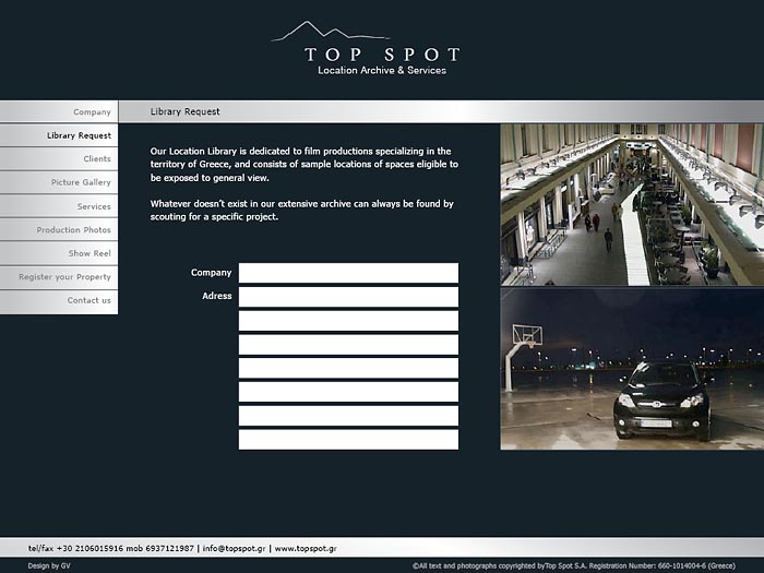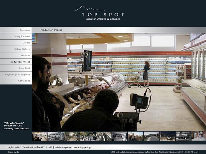 ............................................ Interiors Projects Logos Covers Books Prints Publications Videos ............................................ Sti Skia Ton Vraxon Urbanity Caratex Lookbook King George Simplicity The Tomb of Christ Paradise Geometry Lazy Boy Team We Will Always Have Greece Moodlikeme Darling Bar Echo Beach Concept Store Metropolis Tribeca Meze Tony Bonanno Tora Tora Tora Plus X Top Spot MMD Shiping Services National Printing Office 9 Magazine Ethnodata ............................................ Top Spot Location Services Identity / Logo / Cards / Website 2006 Athens |